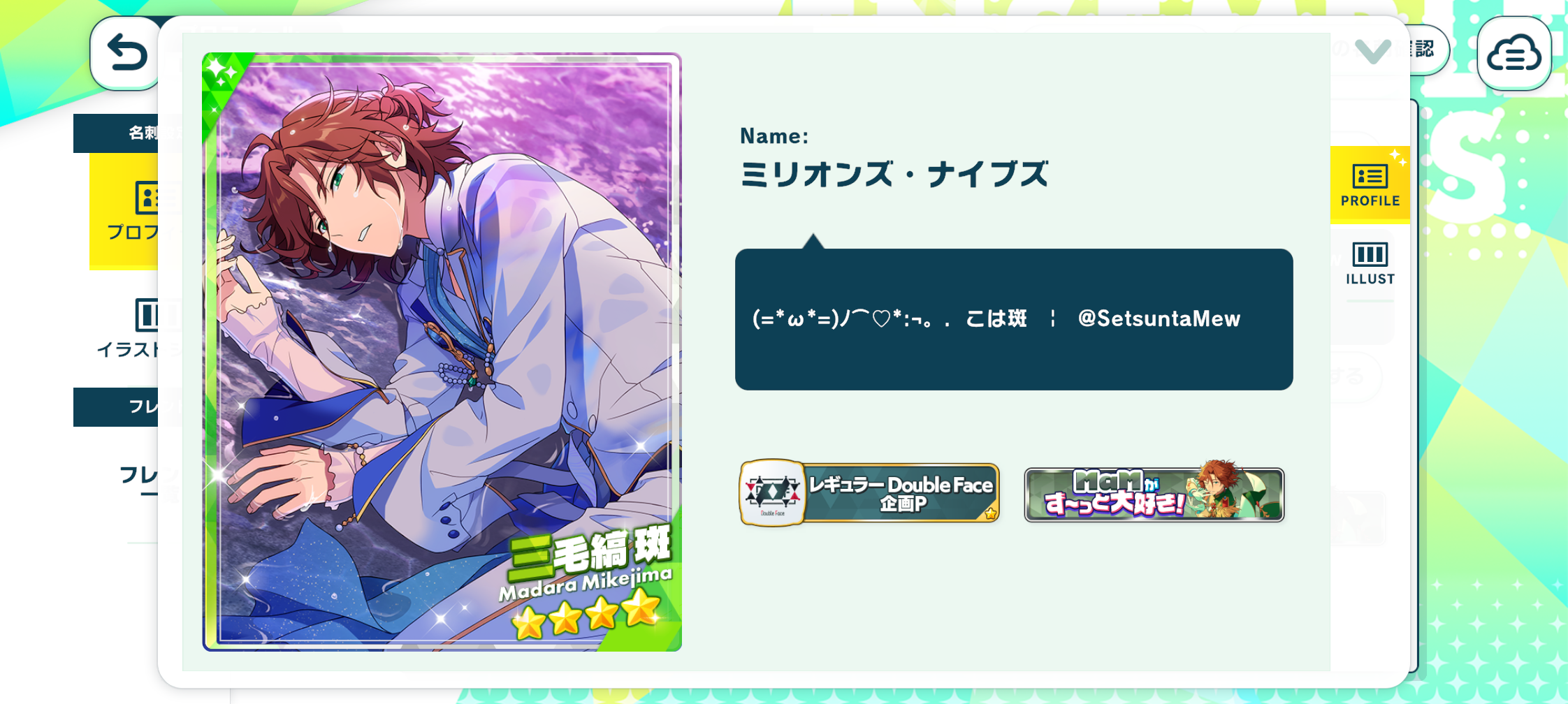 OH AND ANOTHER THING!!!! Because I got them both to rank A+, I got a new title to use in my profile~ Since I wasn't playing in JP when the Double Face climax or TRIP album ran, I don't have any other DF titles ;w; but!!!! I'm excited to have the gold one now ♥